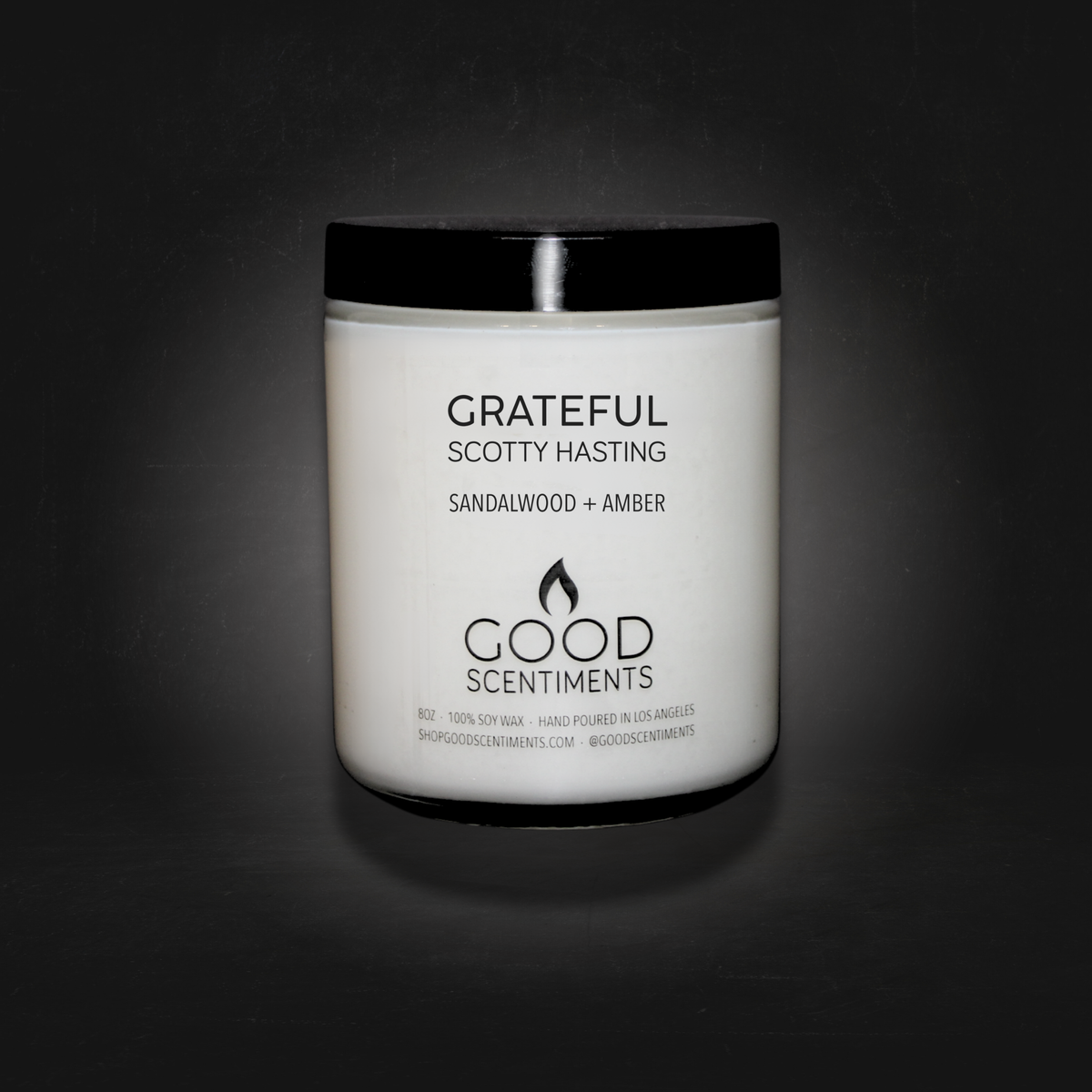 GRATEFUL is a celebration of strength, resilience, and the stories that shape us. Created in collaboration with Purple Heart recipient and artist Scotty Hasting, it's a warm, grounding blend of Sandalwood and Amber that invites reflection and gratitude, while each flicker honors the bravery of those who serve.